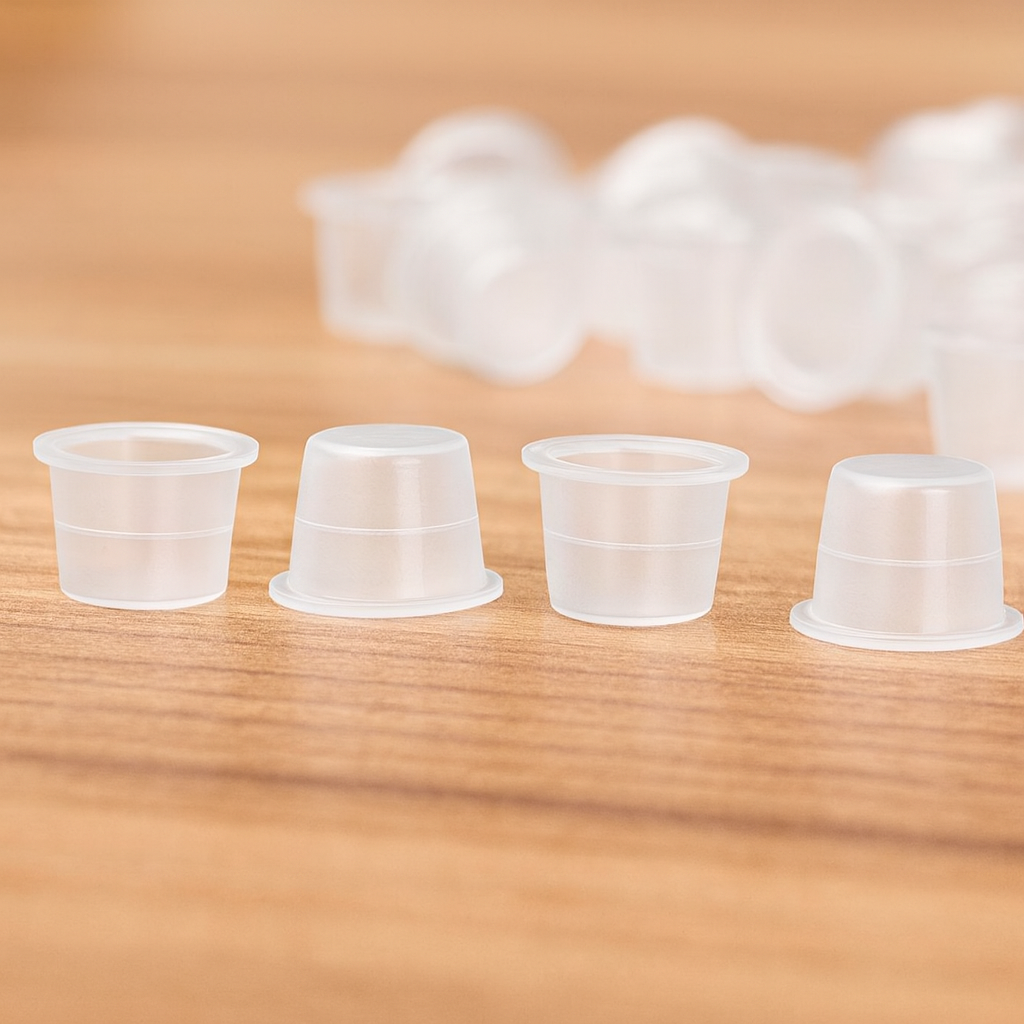 Set up your workstation with professional-grade tattoo ink cups built for stability and precision. These clear, single-use cups feature a tapered base, allowing them to fit snugly into standard ink cup holders for a clean and secure setup.