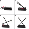 A comfortable and portable folding stool with an adjustable height of 18 to 21.5 inches. Can support up to 190 lbs. Made with synthetic leather that will not discolor with mild cleansing solutions. Comes with a 6 month warranty. Clean with green soap or other similar cleaning solution. A proper cleaning solution of 1 part green soap and 10 parts water will be sufficient for workstation preparation.