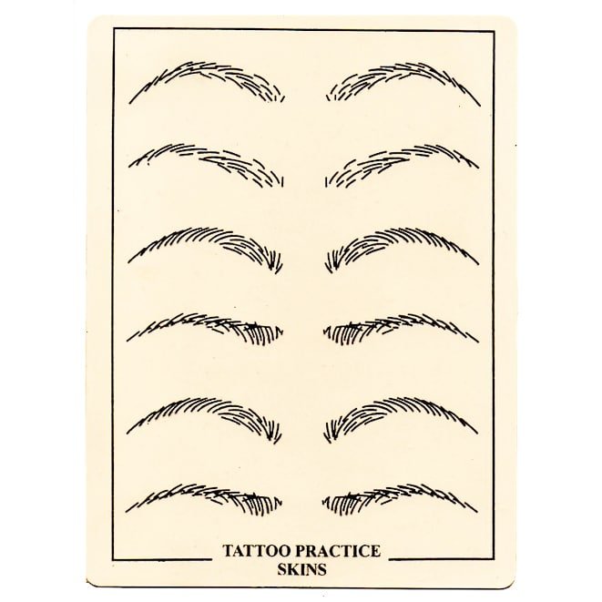 Practice your permanent makeup and microblading hand work skills on this brow flat practice skin. Made of layered soft silicone, it almost feels life-like. One side with print and other side blank to practice your strokes, lining and shading. 6 x 8″ in size.