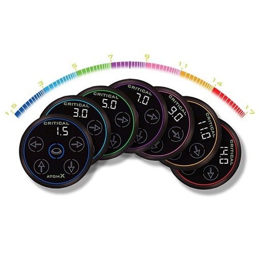 The Atom X Power Supply is a versatile and user-friendly power supply that is compatible with all coil and rotary machines. Featuring an easy to use touch screen buttons making the entire unit baggable. It features a unique voltage indicator that changes color according to its setting, which ranges from 0v up to 17v.