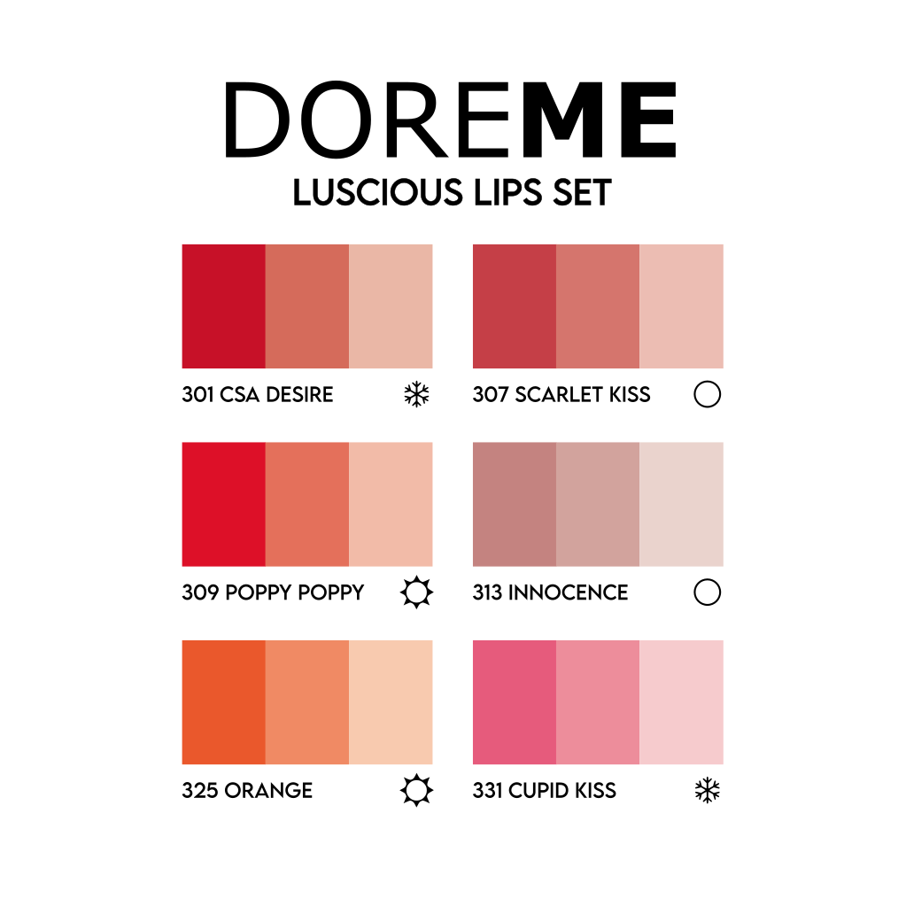 The Doreme Luscious Lips Set is comprised of the sexiest lip colors this line has to offer. Featuring 6 juicy colors that are made for lips. You can mix and match to satisfy your client’s desired final color, and desired consistency. Comes complete with Aura Elixir Aftercare 1/2oz.