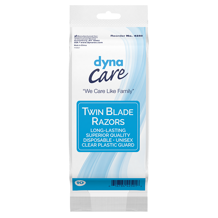 Dynarex DynaCare Twin Blade Razors are designed to provide a comfortable, affordable shave. Designed with double stainless-steel blades to provide a smooth, comfortable shave. The unisex Razors feature a clear plastic guard to safely protect the blade between uses.