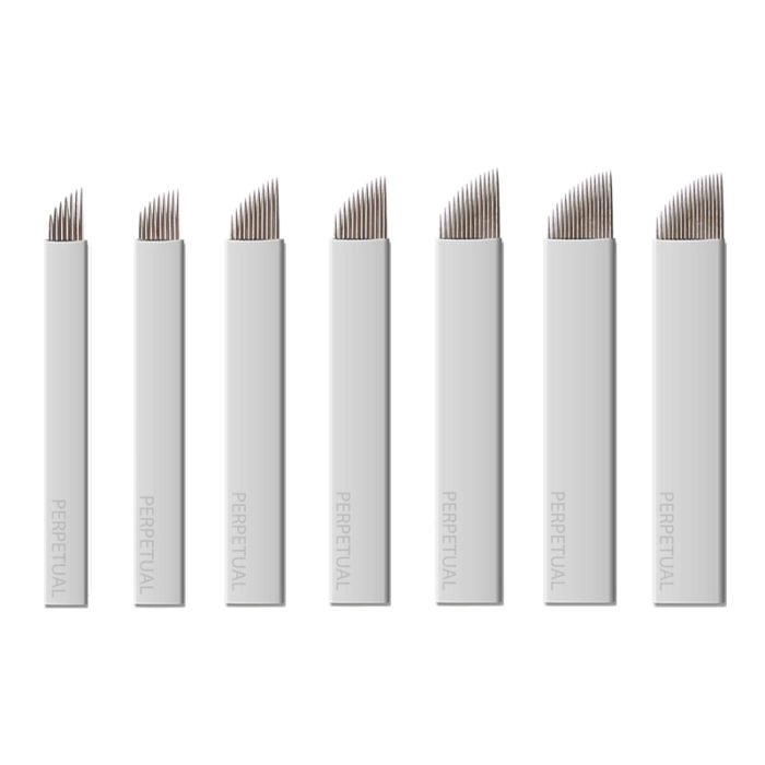 Flexible Soft Microblades from Perpetual Permanent Makeup. These Curved Flat blades are rubber wrapped and have a “soft” impact, allowing for less trauma and work to the skin. Pre-sterilized with lot number and expiry date stamped on individual packaging. Our needles are sent to third party laboratory testing for sterility analysis annually. Made using high quality 316 stainless steel. Available in 10 pack or 50 pack.