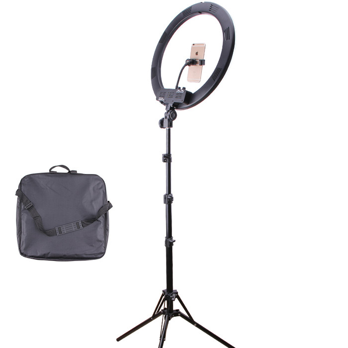 - The whole package: 1 x Dermalogic 18″ LED Ring Light, 1 x Tripod Stand Bag, 1 x Adjustable Tripod Stand, 1 x Flexible Phone Holder