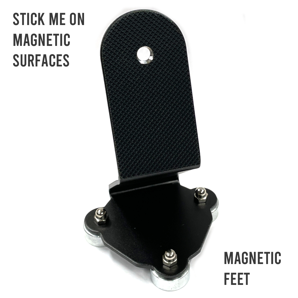 - Comes with a solid metal stand with the option of rubber suction feet to stick onto glass or polished surfaces or magnetic feet to stick onto magnetic surfaces