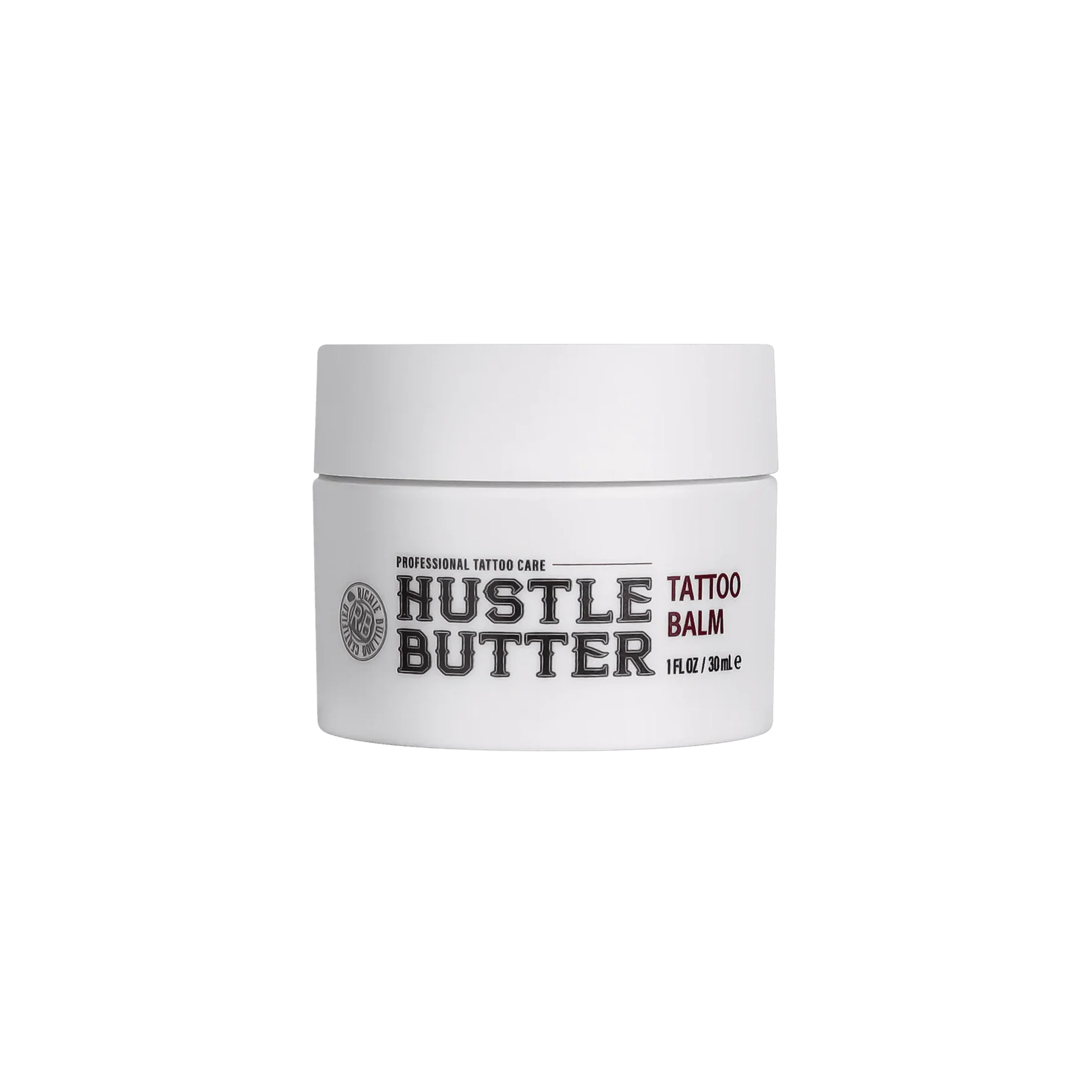 Hustle Butter Deluxe in compact 1oz size. Great for on the go when you have to pack light or just hand out to customers as samples. This stuff is a 100% all natural, vegan friendly replacement for all of your run of the mill petroleum based products used for tattooing. Hustle Butter Deluxe is a Richie Bulldog certified product, says so right on the lid! This stuff is used as a tattoo lubricant before, during and after the tattoo process. Due to its all natural ingredients that nourish and help the skin to heal, it is safe to use during all aspects of the tattooing process. Use this product in place of petroleum products will allow tattoos to heal faster and true to their color. Product Code: HUSB1