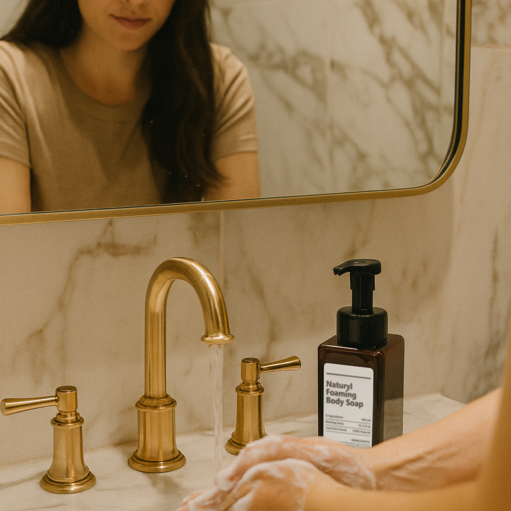 Whether used in the shower or at the sink, Naturyl Foaming Body Soap adds a small moment of luxury to your daily routine with its smooth lather and calming scent.