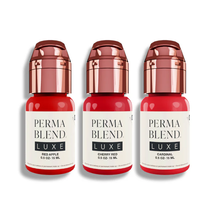Create a classic, red-toned PMU lip using the Perma Blend Luxe Red Lip Mini Set. This set includes three of the most popular Perma Blend Luxe red-toned pigments for PMU lip procedures.