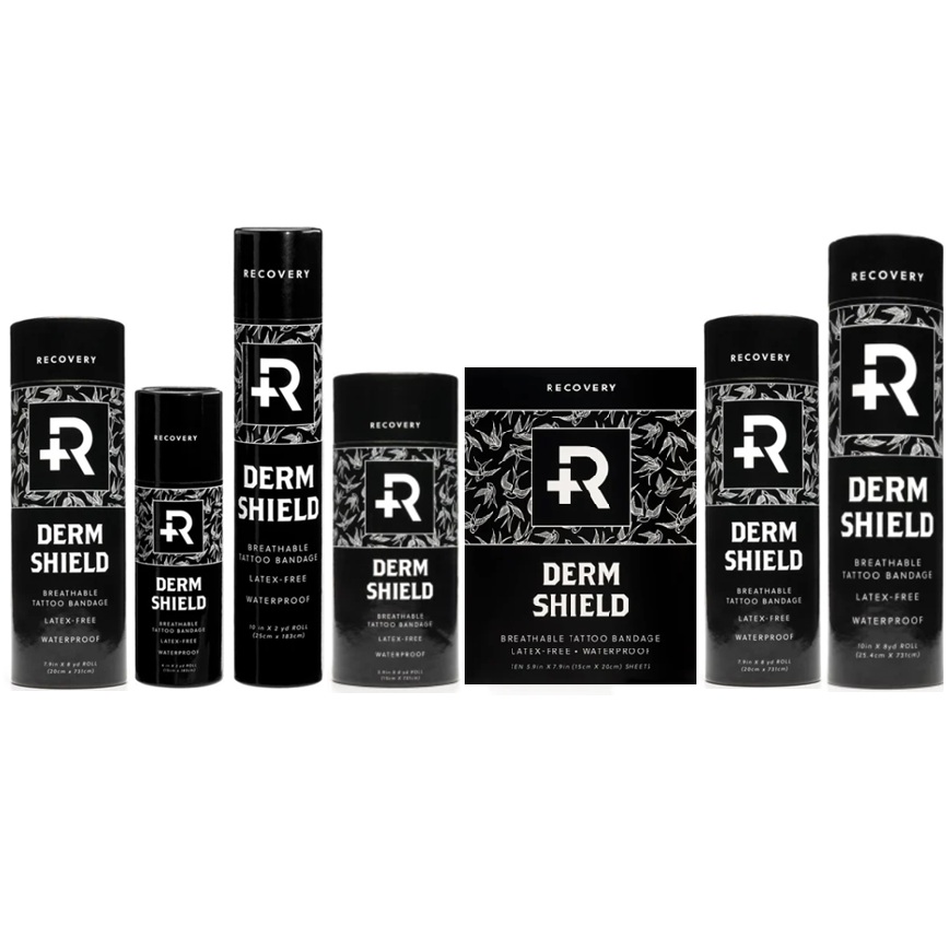 Effortlessly protect your new tattoos with Recovery Derm Shield, a latex-free, transparent matte film adhesive bandage. Derm Shield offers maximum breathability and flexibility, providing optimal conditions for flawless, gentle healing and skin renewal. It eliminates scabbing and reduces the risk of scarring, while preventing exposure to bacteria, dirt, and abrasion. Derm Shield is waterproof, but permeable to allow skin perspiration, and it is durable enough to keep up with your everyday activities with a peace of mind and body. Allow your skin to breathe and heal for a tattoo recovery your skin desires.
