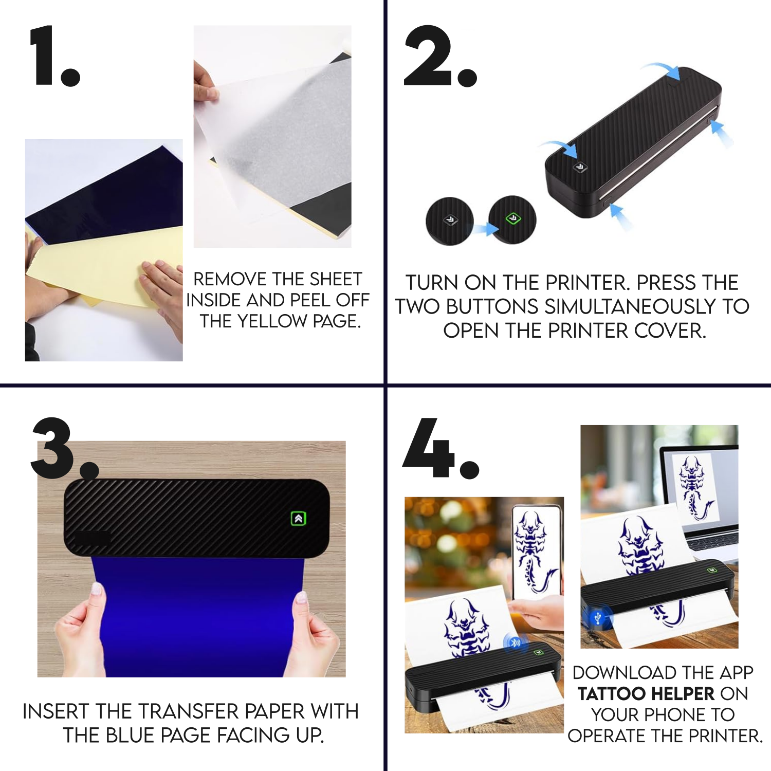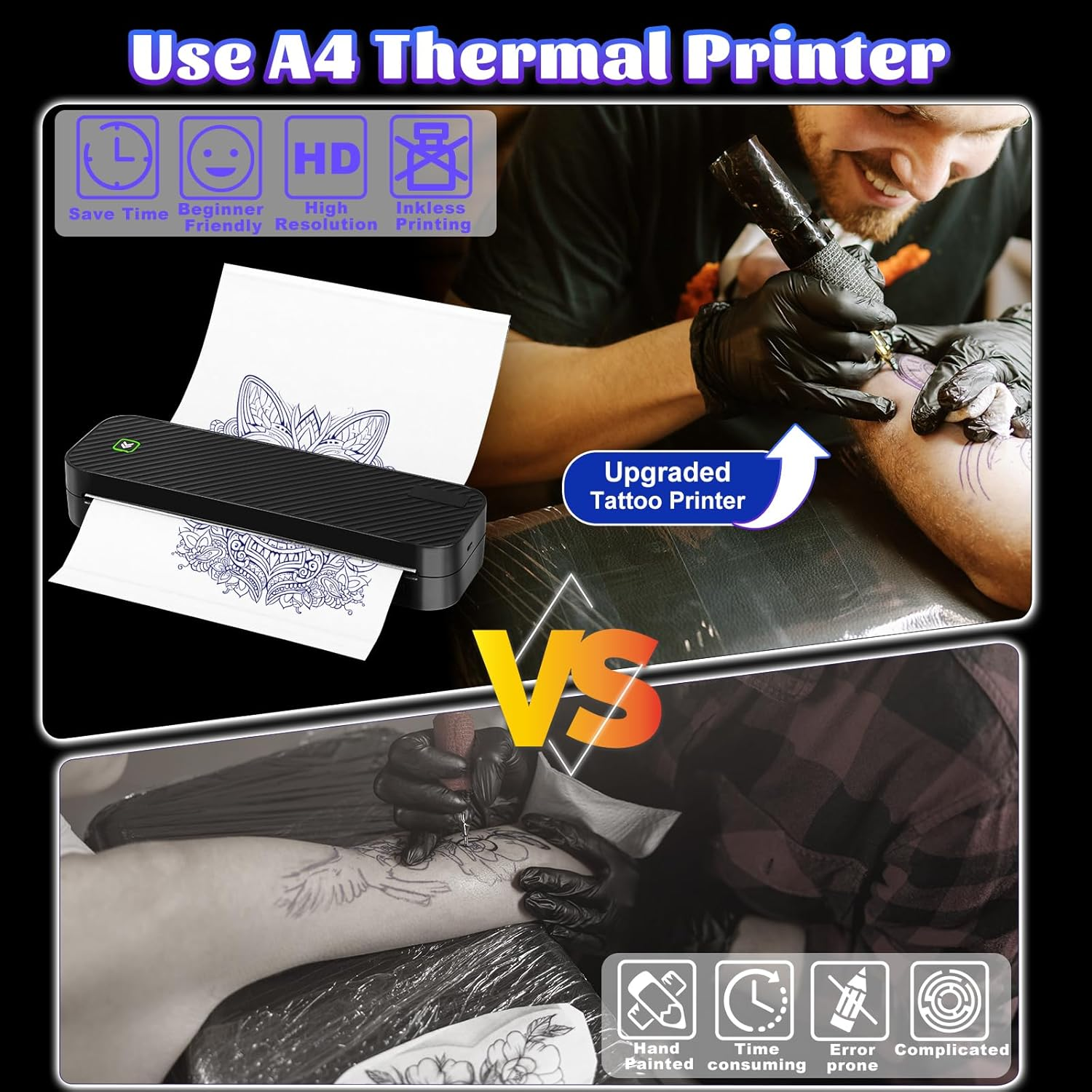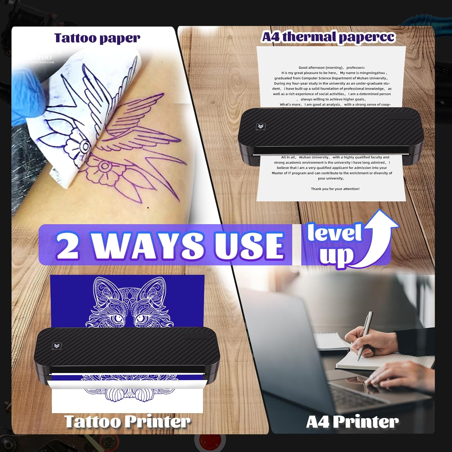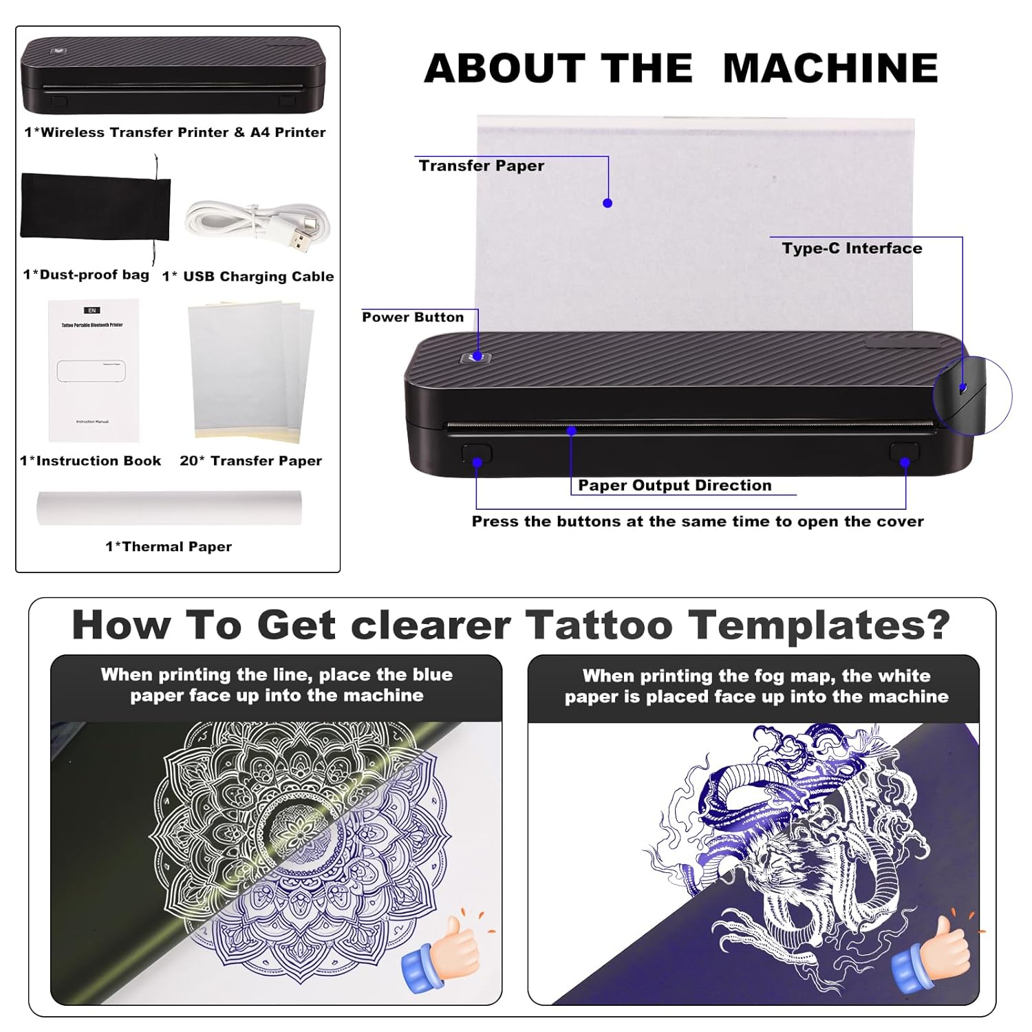- Dual Paper Compatibility: Works with both tattoo transfer paper and standard A4 thermal paper for versatile printing options.
