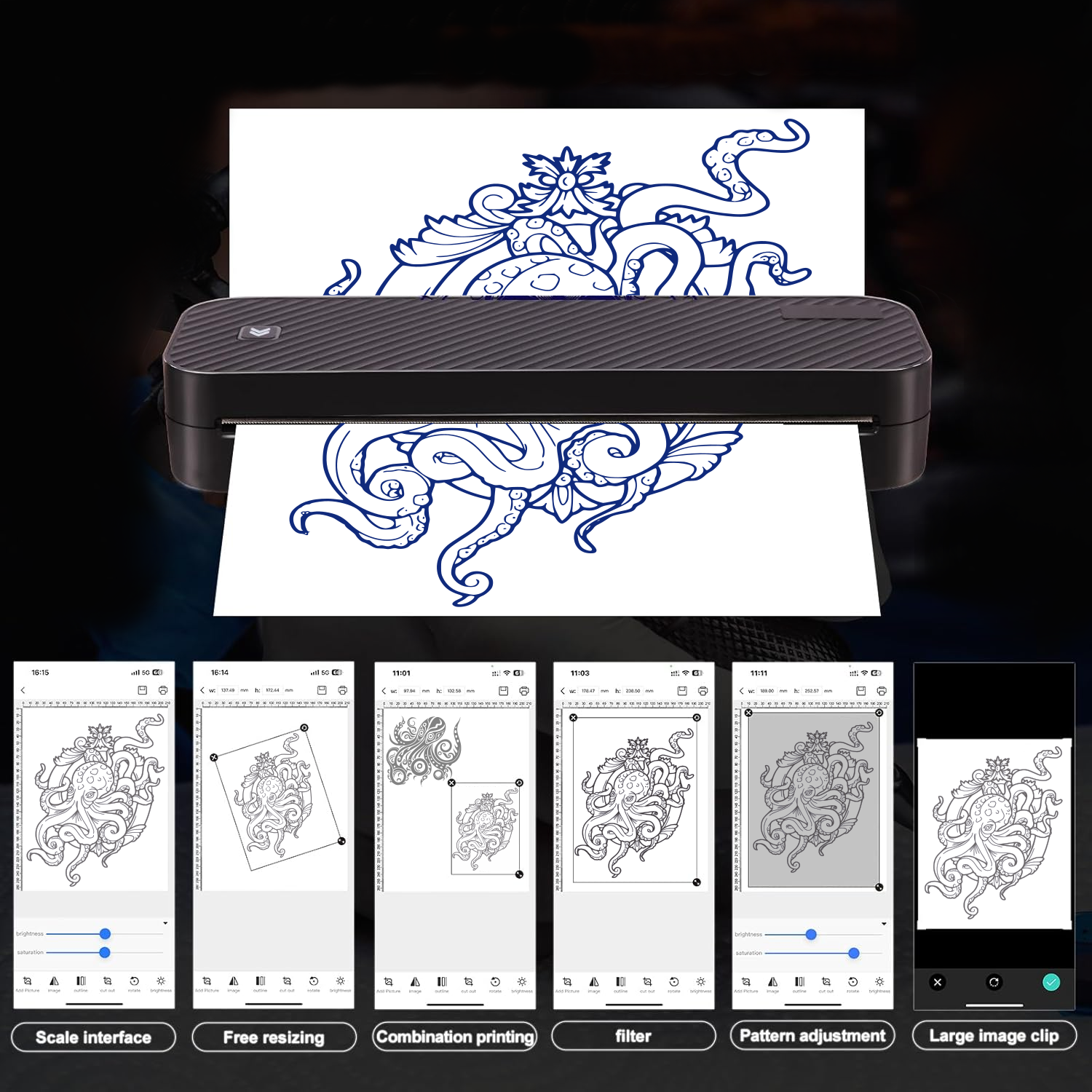 - Bluetooth & USB Connectivity: Easy to connect via Bluetooth or USB cable to print tattoo designs and regular files.