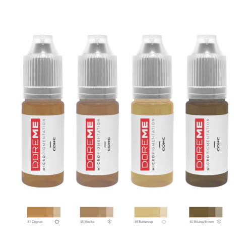 Concentrated pigments are designed to have a pasty consistency. This type of pigment is used primarily for Microblading. The pasty consistency is due to the high concentration of pigment, hence the name “concentrated”. The benefit of its thickness and high intensity color is that it will only take a small amount of skin coverage. The downside is that the ink will be more difficult to work into the skin. The rich color will likely stay in the skin for longer periods, requiring less touch ups. Our Doreme Concentrated pigments are ideal for manual microblading and similar micropigmentation usage. Each twist bottle allows for a controlled release of as little or as much pigment as you need to use. 1/2oz bottle (15ml).